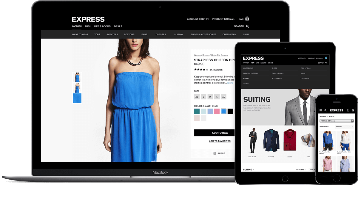 Express asked us to reimagine their site for the fast and ever-evolving shopping habits of their online customers. On-the-go consumers are increasingly favoring mobile devices and tablets and expect retailers to provide great experiences on both. So we redesigned Express.com to be responsive from the ground up. With a touch-friendly experience, users get a seamless Express brand experience, tailored to the strengths of whatever device they visit from.